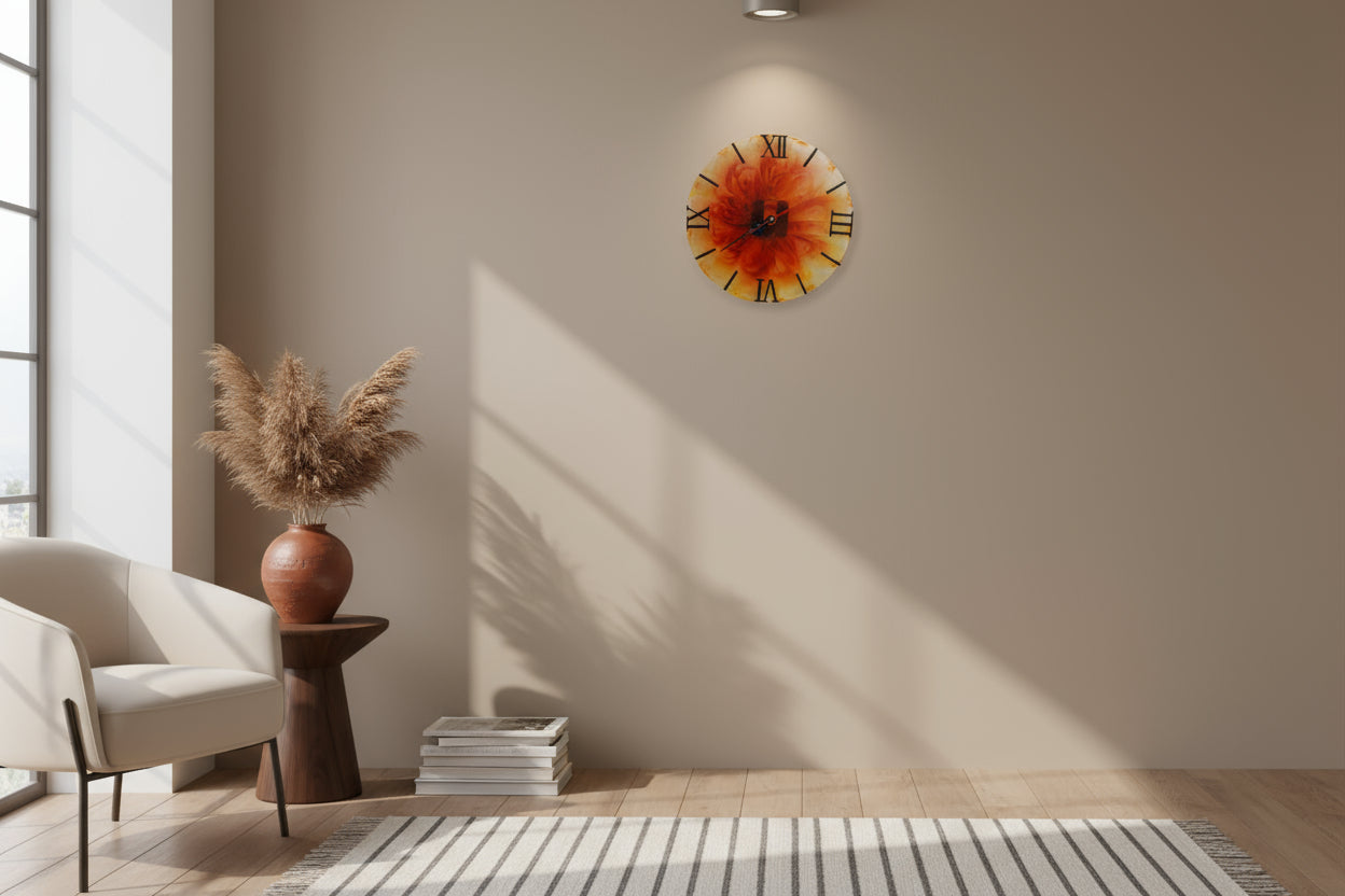 🔥 Cada reloj es único, perfecto en su imperfección, con matices y formas que nunca se repiten. Es ideal para quienes buscan decorar con personalidad, calidez y estilo.